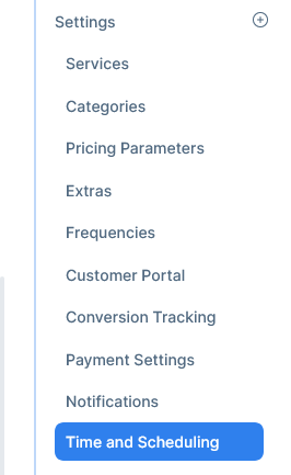 Go to Booking → Settings → Time and Scheduling